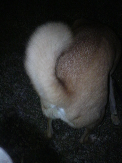 昨夜、散歩から帰還するとお犬のお尻から みよ~ん って何かがのびていた。