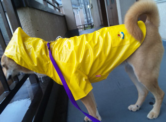 「黄色い雑種です!通常の三倍の防水能力で近付いてきます!」 と、言うわけで雨ならこれ! ・・・といいたいとこですが着るのが面倒なので あまり使ってない 雨の日は相合傘でちょこちょこ歩くワン ブログ村 MIX中型犬 人気ブログランキングへ |